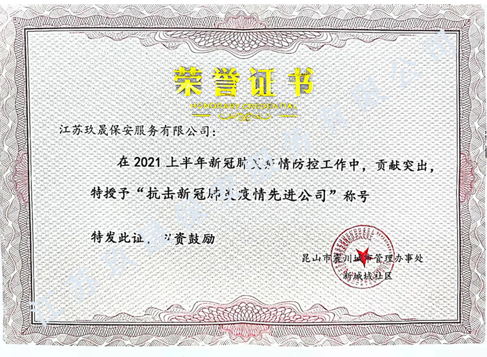 - 我們19年開始和昆山玖晟保安公司合作,合作一直很愉快,尤其這次疫情期間,玖晟保安有條不紊的為我們守住園區(qū)的安全。好樣的。 ---帝浦拓** 2020-05-11